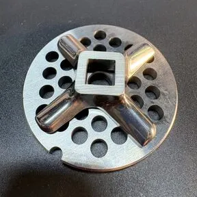 Набор для мясорубки. Условный диаметр - 62 mm. Центральное отверстие - 9 mm. Рабочие отверстия - 6 mm. Посадка ножа - квадрат 10 mm.