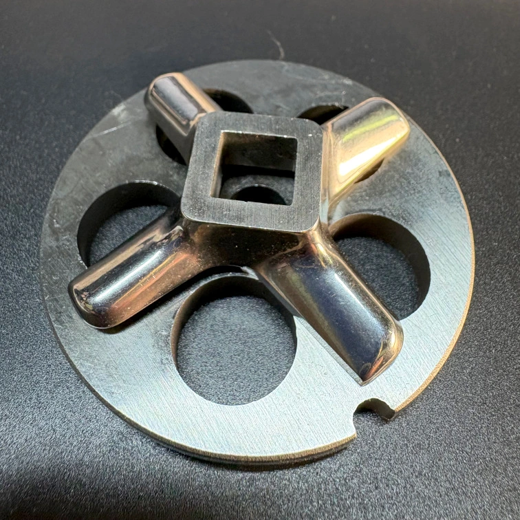 Набор для мясорубки. Условный диаметр - 62 mm. Центральное отверстие - 9 mm. Рабочие отверстия - 16 mm. Посадка ножа - квадрат 10 mm.