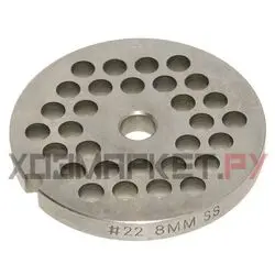 Z028.17 Решетка №4 (нерж) к отечественной электромясорубки ХОЗЯЮШКА (D-53,5/8мм, раб. отв. 8мм, inox)