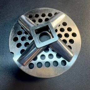 Набор для мясорубки. Условный диаметр - 69 mm. Центральное отверстие - 10 mm. Рабочие отверстия - 5 mm. Посадка ножа - квадрат 12 mm.