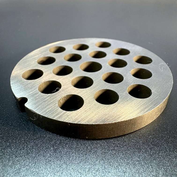 Решётка для мясорубки. Условный диаметр - 62 mm. Центральное отверстие - 9 mm. Рабочие отверстия - 8 mm.