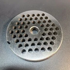 Решётка для мясорубки. Условный диаметр - 69 mm. Центральное отверстие - 10 mm. Рабочие отверстия - 5 mm.