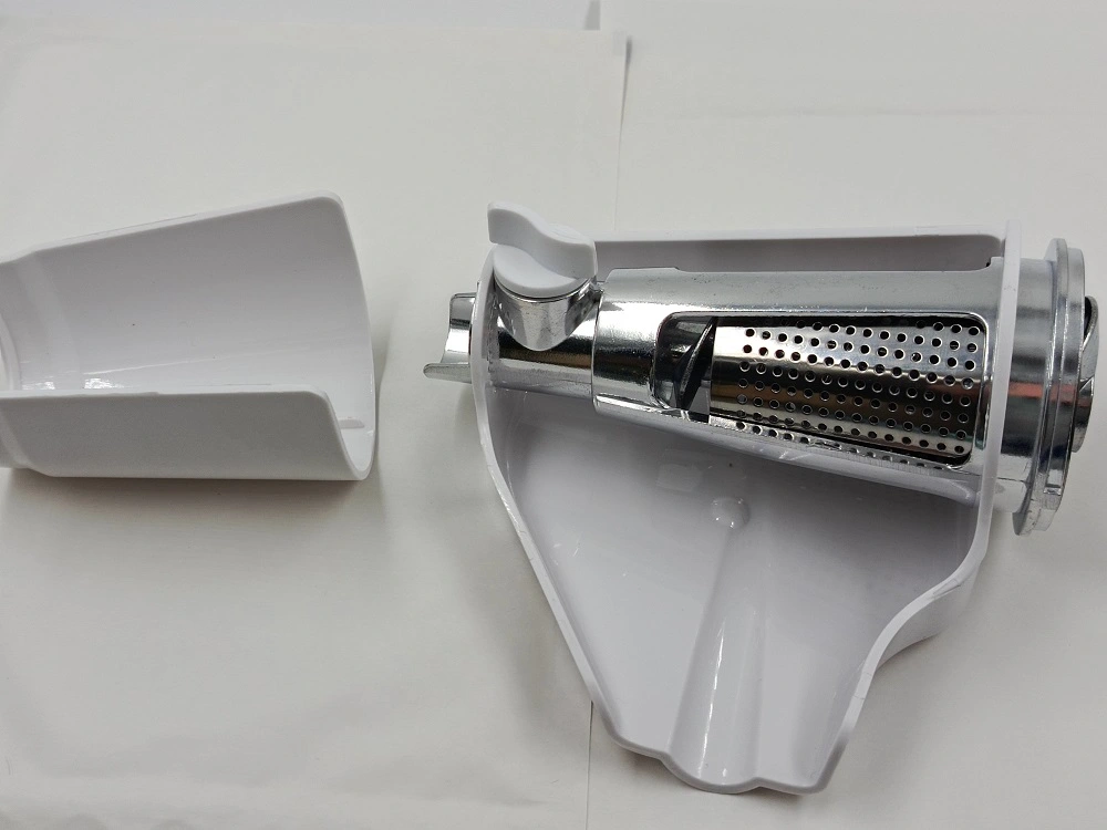 Корпус шнека, шнек и гайка как правило, изготовлены из алюминиевого сплава. С этими деталями нужно обращаться осторожно. Их нельзя мыть в посудомоечной машине. Нельзя использовать агрессивные моющие средства.