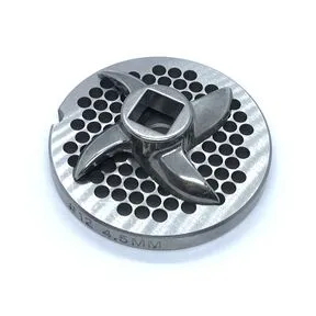 Набор для мясорубки. Условный диаметр - 69 mm. Центральное отверстие - 10 mm. Рабочие отверстия - 4.5 mm. Посадка ножа - квадрат 12 mm.