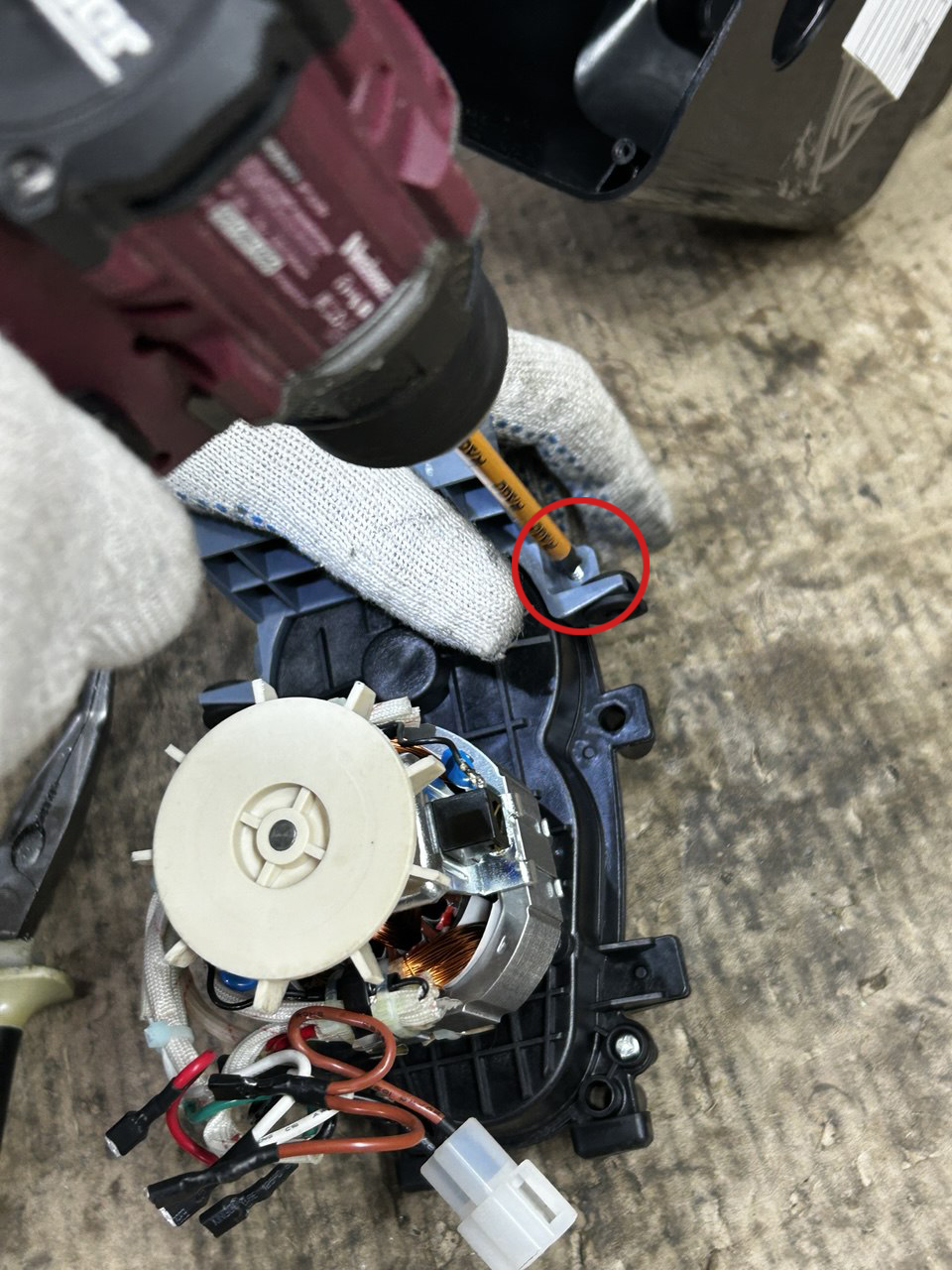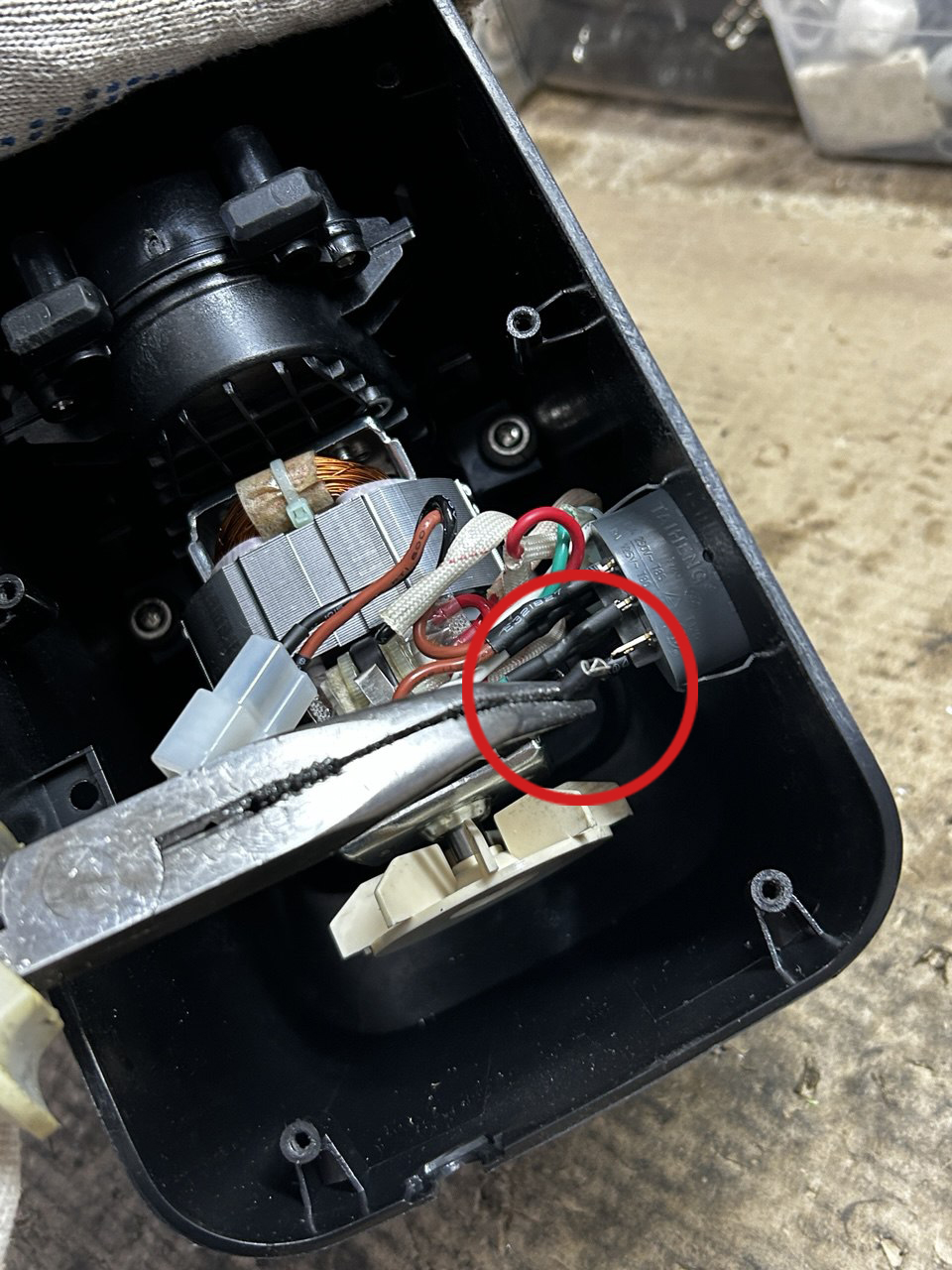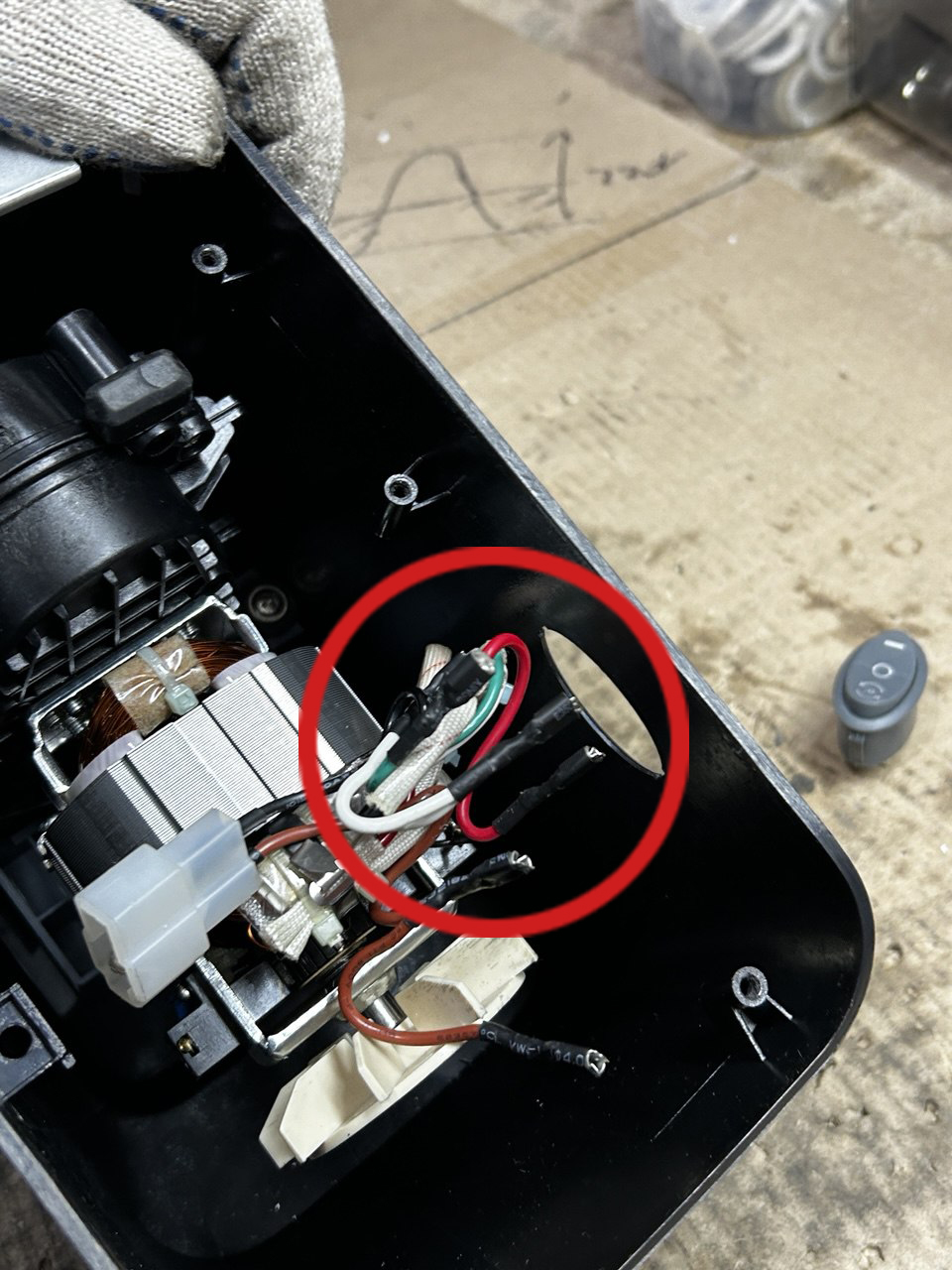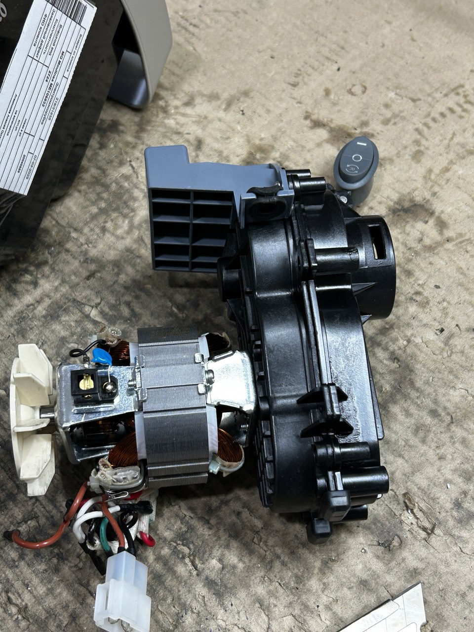 Потом нужно вытащить переключатель из корпуса, так будет легче разбирать мясорубку дальше