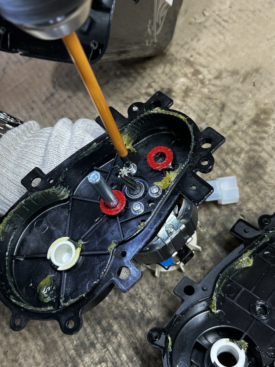 Мы на финишной прямой, осталось только открутить крышку редуктора и мы сможем поменять шестерни в мясорубке, а дальше, если нужно, открутить и поменять сам двигатель